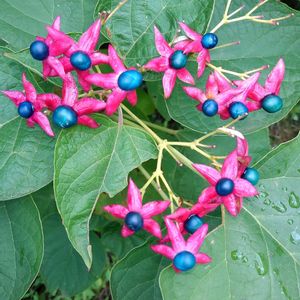 💎宝石のようなクサギの実🔵⚫️🍃 通勤途中🚙💨の雑木林🌳🌳で、🤳パチリ 綺麗だなぁ🥰