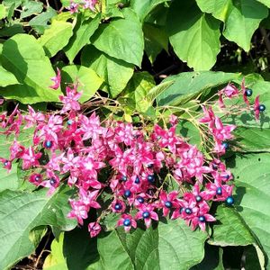 クサギ(臭木)シソ科クサギ属 クサギの実が綺麗なターコイズブルーになってました。 1⃣ 右のブルーの実 ハート型になってます。 4⃣ ここのクサギは葉っぱが綺麗でした。 5⃣ 夏に可愛いお花が咲いてました。 8月9日 クサギの和名の由来は枝や葉を傷をつけると悪臭がすることから。 若葉は山菜として食べられるそうです。 名前とは違い、花は良い香りがするようです。 落葉低木または小高木、高さ1.5~10m