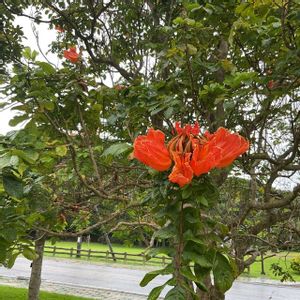 カエンボク? 沖縄のすごい大きい花をつけた木!!なかなか見ないのでびっくり‼️