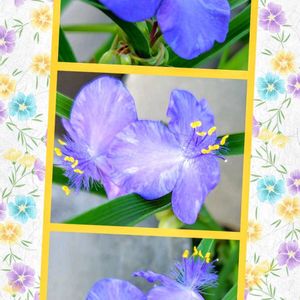 今日のお花 ✾ムラサキツユクサ 細かい産毛が生えているのを 大紫露草と言うそうです 3枚の花弁が作る三角形の花 黄色いフワフワの雄しべと花色の対比が爽やかです🩵💛 ✾3枚目𓂃◌𓈒𓐍 バーベナ‥美女桜 アイストィンクル🩵 庭の花便り𓂃𓂂𖡼.𖤣𖥧𓈒◌܀✉🕊𓂃