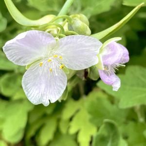 今日のお花 ムラサキツユクサ ①白い花 毎年家の周りのあちこちに咲くムラサキツユクサたち ②白と紫の中間を見つけました💡 ③今朝の、こぼれ種で増えている大帽子花 種まきしなかったのに、いろんな場所に出現してます。