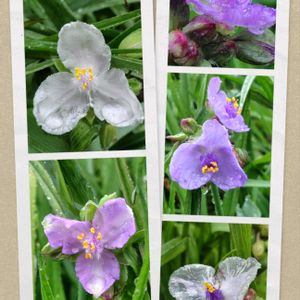 今日のお花💜ムラサキツユクサ💜⋆͛ 4種類💟咲きました🩷🩵🤍 2️⃣今朝の👘あおいちゃん💙
