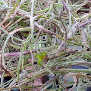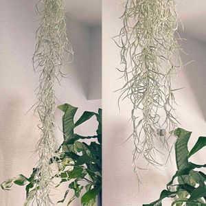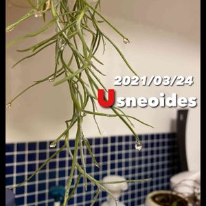 【チランジア・ウスネオイデス(スパニッシュモス)】 朝から、植物のお世話〜。この時間が幸せです(๑° ꒳ °๑)ウスネさんのキレイな緑色を写真で撮るの難しいですね〜。 ウスネさん、好きなのですが何回も枯らしてて😢 気づいたら霧吹きをする子と、水にジャバジャバつける子2パターンで育てて見てます! ちなみに、最近スパニッシュモスがウスネの別名って知りました、笑。 スパニッシュモスの方が細葉かな?と思ってました。