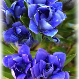 竜胆 蒼孔雀/リンドウ アオクジャク リンドウ蒼孔雀は岩手県花巻産のリンドウの仲間で、リンドウでは初の八重咲品種です。美しい花形の八重咲きで、花粉を持たないため抜群の花持ちです。花巻市ゆかりの宮沢賢治の作品「銀河鉄道の夜」の一説に孔雀の羽を広げた模様が八重リンドウが咲いている情景を連想させることから「青孔雀」と命名されました。 http://88182000.blog21.fc2.com/blog-entry-22624.htmlより 2021.10.23 山梨県シャインマスカットの直売所で見かけました(バスツアー)