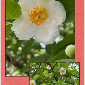 おはようございます🌅😊 今朝は丁度良い体感です✨ 湿度は高いです👍 ✨今日のお花✨🤍🌺ナツツバキ🌺🤍です😆👍✨ お出かけ先のとちぎ花センターで撮影しました😆👍🌺🤍💚🩷 綺麗です🤩😍👍