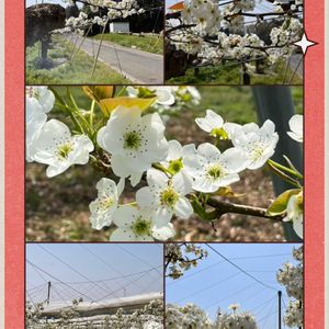 おはようございます🌅😊 曇り空で蒸し暑い朝です✨ ✨今日のお花✨🌸🍐ナシ🍐🌸です😆👍🤍💚💛 お出かけ先で撮影しました😆👍🚗✨💕 梨のお花、綺麗で可愛らしいです🥰✨💕 果実も甘くて美味しいので大好きです😘😋❤️🍐🍐