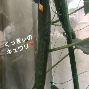こんにちは😃🌸〜 毎日暑い🥵💦ですね〜 愛犬の大好きなキュウリ🥒 愛犬専用のキュウリ苗です。 6本かな? チビキュウリ🥒が実っています。 お花が咲くたびに受粉しています。 キュウリの成長は早いからもう少し❣️👍