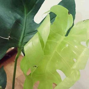 モンステラ デリシオーサ var.バリエガータ 白斑の蓬莱蕉 葉緑素の無い白い部分が茶色くなり、 いずれ枯れてしまいます…