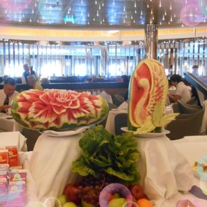 🚢カリブ海クルーズNo.1-17🚢 客船内メインダイニング ビッグサイズのオブジェスイカ🍉