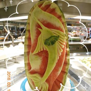 🚢カリブ海クルーズNo.1-20🚢 客船内メインダイニング ビッグなオブジェスイカ🍉