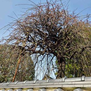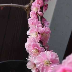 シダレウメ 富士牡丹枝垂 この枝垂れ梅に出会って 吊るし雛を連想した🎎 豊後系でアンズとの交配種らしく、"ほぉら、やっぱりアプリコット♪" ところがニホンスモモとの交配種 露茜 は実が赤くて、赤い梅酒やシロップが! 牧野先生、今頃ひっくり返っておられるかも?