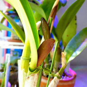 カトレア シュロデレー セレクト C. schroederae × sib amethystina select No,1 × select Abe Ⅱ 大好きでたまらなくて、欲しいけど高くて ずっと見送ってきた、桜餅の香りがするカトレア、シュロさん✨ 去年、たぶん蘭園さんの棚場整理のため NBSサイズ未開花ということで、手の届く価格になっていたため 2株をお迎え✨ まさかこんなに早く🌼芽が上がるとは思わず 陰が出来た時は思わず二度見(笑)❕ でも私、東京に来てからシース内で良くシケらせてるから😭 ここまではアップせずに見守ってたの😁💦 このシブリング株は、青みがかった花を狙った交配だとか。 私としたら、シュロが家で咲くだけでも嬉しいけど できれば良い花が咲いてくれたら、やっぱり最高💖💙✨ 初花だし、1輪だから、とりあえずは無事に咲いてくれますように🎶
