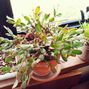 かれこれ21年前嫁に来た時、義母と花屋に行って買ってもらったカニバサボテン🌵 この間、植え替えはたぶん2、3回、ほぼほぼ放っときで、よく咲いてくれますよね💦 今年も花芽が膨らんてきました♪ 優秀な子✨✨ 暴れてますけど💦