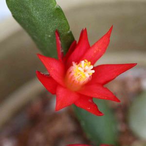 今朝咲いていました。真っ赤です🌺 随分前に実家のを葉をカットして刺してた。 小さな小さなカニサボテン。でも、疑問。 カニサボテンではなく、カニバサボテンというのが正しいのか? イースターカクタスなのか? 我が家のは葉がひとつ増えただけでそこに花が咲きました🤗