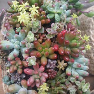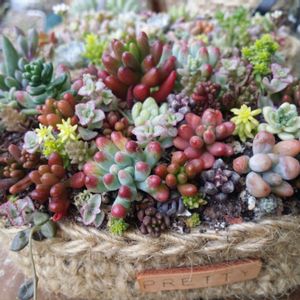 こんにちは~🎵つぶつぶの日2枚目🎵 またまたチマっちゃった~🎵 フフフ🎵 今日はつぶつぶ寄せ植えです💕 麻かごがどんどん大きくなっていく~~💦💦 寄せ植えに多様化してる つぶつぶちゃん達を早くも ✂して初めてのつぶつぶ寄せ💕 超きゃっわぃぃいいい❤ 虹の玉・乙女心・ホワイトストーンクラブ・オーロラ・ビア・ポップ レッドベリー・玉連・グリネ.・ピーチネックレス・ミルキーウェイ 斑入りタイトゴメ・タイトゴメ ダシフィルム・パープルヘイズ ブラックベリー・ルビネ・小人の祭り その他 リトルミッシー、リトルフロッジー、黄金細葉万年草 そして不明1以上