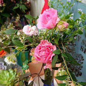 上のは少輪ピンク薔薇 下のは以前投稿したアンジェラのドライフラワー 今も綺麗に色が残っています 最近ドライフラワーするの楽しくて、少しずつ増えてます