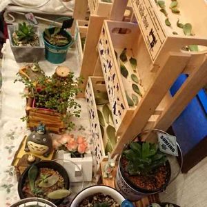 玄関右側です たくさん多肉ちゃん再生中🏜️ 寄せ植えたくさん出来そうです🎶