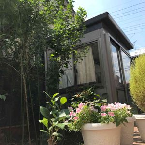 ランチタイムに失礼致します🍝 突然ですが我が家の小さな庭の小さな花壇の大きく育ってる菊をご紹介する事になりました!ドーンと高さ2m! (180cmくらいだと思っていたが予想以上。異常。) メジャーが2mまでしか測れない💧 奥に映る100人乗っても大丈夫な稲葉物置をもうすぐ越えそうな勢い。ハンパないです🌱↑☀️ ここまで育った菊は初めてなのでこの場をお借りして記録させて頂きます。 (一本は2年目。もう一本は3年目。 幹はやっぱり太くて立派。) 誕生日プレゼントで頂いたガジュマルさん🌱普段は私の部屋にいますが、お天気の良い日は日光浴して過ごしています♪ 菊よ。好きな様に伸びなさい。 ご覧頂きありがとうございました😊🌈🎶☀️