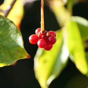 お散歩中に見た果実(樹木)たち… センダン(栴檀) シャリンバイ(車輪梅) クサギ(臭木) ナンテン(南天) ミツバアケビ(三葉木通):お庭 ⚫︎⚪︎⚪︎⚪︎⚪︎