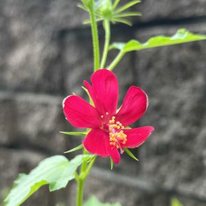 3センチ程の小さな可愛いハイビスカス🌺が咲きました💕 2年前に耐えてしまったと思っていましたが、冷蔵庫にタネが3粒残っていたので蒔いたところ、2本の芽が出ました🌱