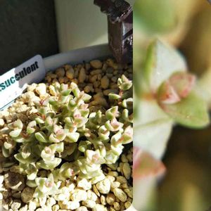 この前久しぶりに行った園芸店でクラッスラのパステル見つけて早速植え替えました
