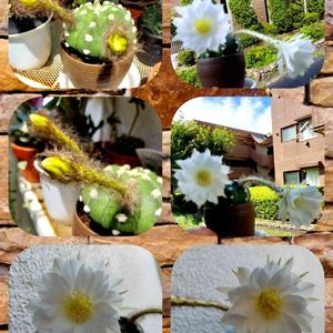 3度目のお花は2個同時に咲きました。💓♥️❤️ トゲ無しサボテン 「エキノプシス大豪丸」 毛羽ケバのつぼみは全部で8個有りました。成長途中でポロリ落ちていたのと私が写真をとろうとスマホを近付けたら触ってしまいポキッって折ってしまいました。結局5個のお花が咲きました。👍🎺ラッパの様な形状ですよねお花が重いのか咲き始まると直ぐにしぼんでしまうので貴重な写メ体験ですね😃
