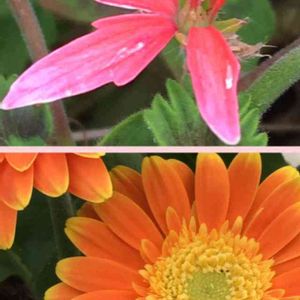 こんにちは😃 お庭のもみじゼラニウムさんと今日、スーパーにお買い物に行った時に買ったガーベラさんです😍