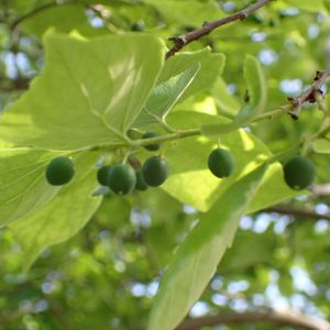 目に青葉~2023🏷️応援投稿です😊 3番目に投稿した“エノキ”🌳。散歩コースのエノキ、実が沢山できてます。 鳥🐦️のエサの🌳、榎の向こうから朝日が🌞 (2023/5/12撮影)