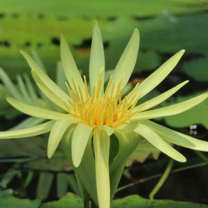 💛エルドラド🪷💛 現在、誤って日本の植物園でエル・ドラドとして展示されているのは、ほとんどが本種であるようです。花色は鮮やかなレモンイエローで、花弁が真っ直ぐに伸び、また大きく反り返るため、水面上でも非常によく目立つ品種です。葉表は赤茶色の模様がドット状に入ります。やや小型で多花性です 花色/レモンイエロー 花size/8〜12㌢ 葉size/18㌢前後