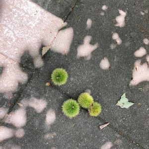 栗が落ちてました☺️ あれ、あれれ、幼稚園児❓保育園児❓セミ取りに来ています😍