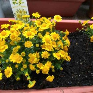 『ダールベルグデージー』が風にふわふわ揺れながら元気色で咲いてます(*´∇`*)