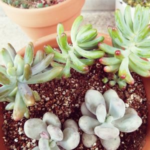 上の方が 重いのか 倒れて来るので 深めに植え替えてあげました🌵🌵 ポロポロ落ちて 葉挿しにした子も 根付いていました💕💕