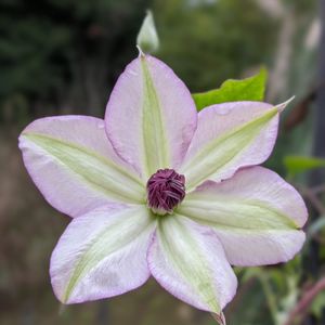 今日のお花 クレマチス 10月のpic 少し季節は過ぎて 1輪楚々として 咲いていて💞📸 緑の筋 桃色の裏花弁 "ユートピア"
