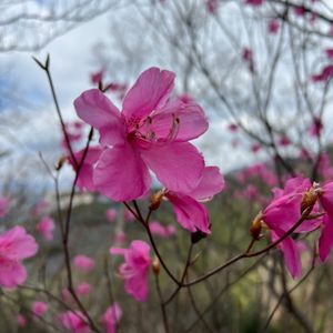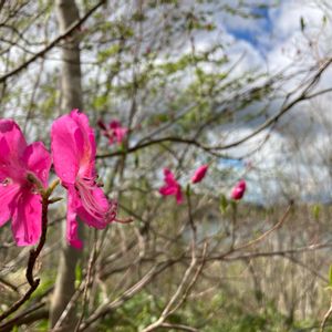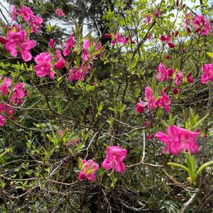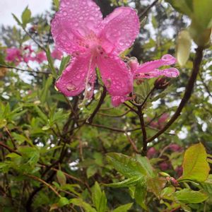 実家のムラサキヤシオです。種から育ったものも含めて庭には20株くらいもあります。5月の満開時には濃紅色が新緑の中で映えます!
