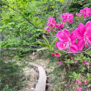 ムラサキヤシオって、こんなにたくさん花をつけることもあるんだぁ。 と、ただただびっくり。 深緑のなか、ハッとするほど鮮やかピンク。 2021.6.12.会津駒ヶ岳