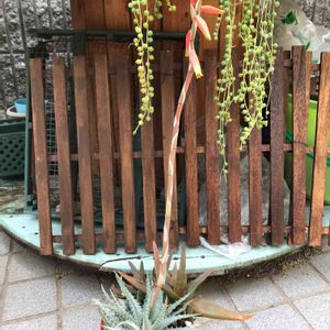 アロエ 帝王錦が花の芽を出していたことに今日気づいた。葉より太い。つくしみたい(笑)