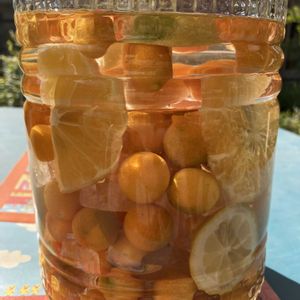 たくさん金柑が採れたので今年も金柑酒を作りました 金柑は果汁が少ないのでレモンとはっさくも入れました(〃´-`〃)