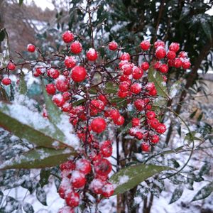 おはようございます♡ 薄らと雪が積もりました 風が強く一時吹雪でしたが今は晴れ間が見えてます 南天の実に雪冬ですね☃️