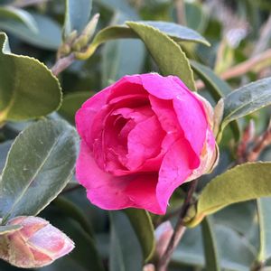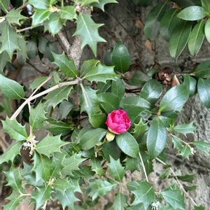 いつもラブラブ🥰な柊大将軍と山茶花夫人。 山茶花夫人が咲き始めました。柊大将軍もまだ踏ん張って花付けて紅白の共演。