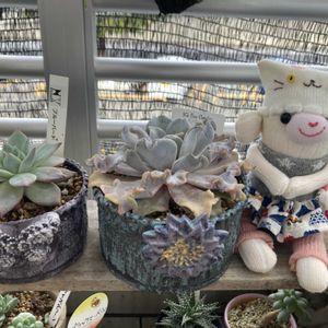 ハイタ〜イ チャーガンジューヤイビンナ〜☀️ ←ブルーバード🕊️ →クリスペイトビューティー お気に入りのかおりんさんの リメ缶にお気に入りの多肉ちゃん 今日も晴れの23℃です☀️