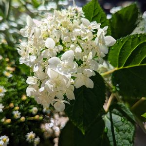 あまりに強い日差し🔥と暑さなので、半日陰に移動したアナベル ピンカーベル。 2回目の小さいお花が、濃いグリーンに涼し気な白で咲いてます💚🤍