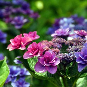 ガクアジサイ 日本の固有の植物だったアジサイ。 品種改良されて逆輸入。(シーボルトさんありがとう。) 一重や八重、七変化の花色で、とても綺麗😍✨。何年か前に、幸手権現堂堤で、撮りました📷️✨。