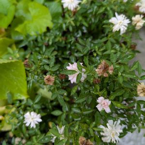 ギョリュウバイが咲いた。 買って約1年半で今まで5月にしか咲いたことがなかったので調べてみると11月〜5月に咲く冬の花物らしい。 にしても今!? 5月より蕾も花自体も小さい。 剪定はした気がするけど夏前だった気がする。 季節外れに咲く要因なんて他にあったのかな?