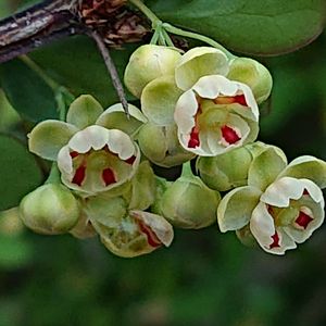 今朝の散歩で出会いました🎵 緑も赤も鮮やかです❤️ <メギ>(目木) メギ科メギ属 落葉低木 別名 コトリトマラズ、 ヨロイドオシ メギの由来は、茎や根を煎じて洗眼薬に利用されていたから <ネズミモチ>(鼠糯) モクセイ科イボタノキ属 常緑広葉樹 名前の由来は、実がネズミの糞に似ていること、葉がモチノキに似ていることから