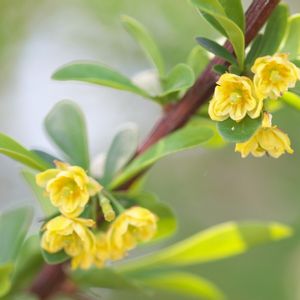 メギ科の植物、イカリソウやナンテン等は目にするがメギの花は初めての出会い 公園の薬草園で咲いてました 茎や根を煎じて洗顔薬として使われたので「目木」 なるほど 枝に鋭い棘があり鳥が止まれないから 別名 コトリトマラズ だそうです