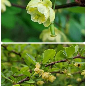 今年もちっちゃなメギの花が咲きました😊🌼🌼 蕾の赤いストライプ可愛いです❤️♥️ 秋の紅葉時はピンクの葉が綺麗なんですよ💗💗