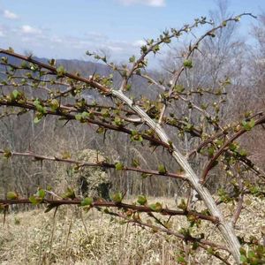 花まつりの終わった天狗山にて。 今回出された宿題です😆どなたか教えて下さい、この葉っぱ🍀 半蔓性で4、50センチ、トゲがあります。 メギだそうです❣️ ありがとうございました😊