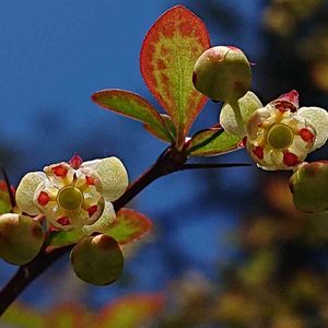 メギ(目木〜花と果実) 🌼🌲🍎 果実は秋に赤くなります☺️ トゲがあるため「コトリトマラズ」の別名も…