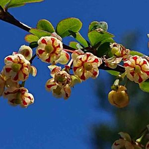 この小さな花たちに出会ったのははじめてだと思います。木は3メートルくらいになっていて、トゲがあります。落葉樹です。 「メギ」の何て種類なのでしょうか 🤔 「メギ」ではないのでは?という意見も。
