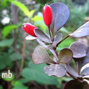 メギ 'ヘルモンドピラー' Berberis thunbergii 'Helmond Pillar' ポチッと実が♪